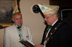 Insgesamt galt es neun (!) Neumitglieder aufzunehmen und vier Mitglieder zu ehren – dreimal für zehnjährige und einmal für zwanzigjährige Mitgliedschaft in der Gesellschaft. An dieser Stelle durfte auch der Präsident des LRK seines Amtes walten und die verdienten Mitglieder auszeichnen. DIes tat er gewohnt eloquent und mit dem Eindruck, sich „im Wohnzimmer der 38er“ doch recht wohl zu fühlen.