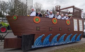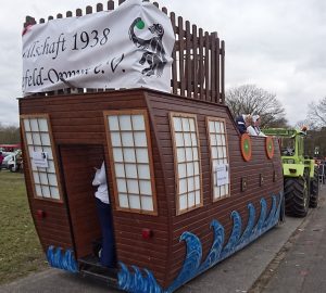 Die Gesellschaft 1938 Krefeld-Oppum e.V. hat sich entschlossen, getreu dem Motto, mit einem „Narrenschiff“ durch den Rosenmontag zu ziehen. Knapp 20 Mitglieder der 38er, es waren auch einige sehr junge Mitglieder bei ihrem ersten Rosenmontag dabei, hatten richtig Spaß und feierten sich und den Karneval auf dem tollen Schiff.