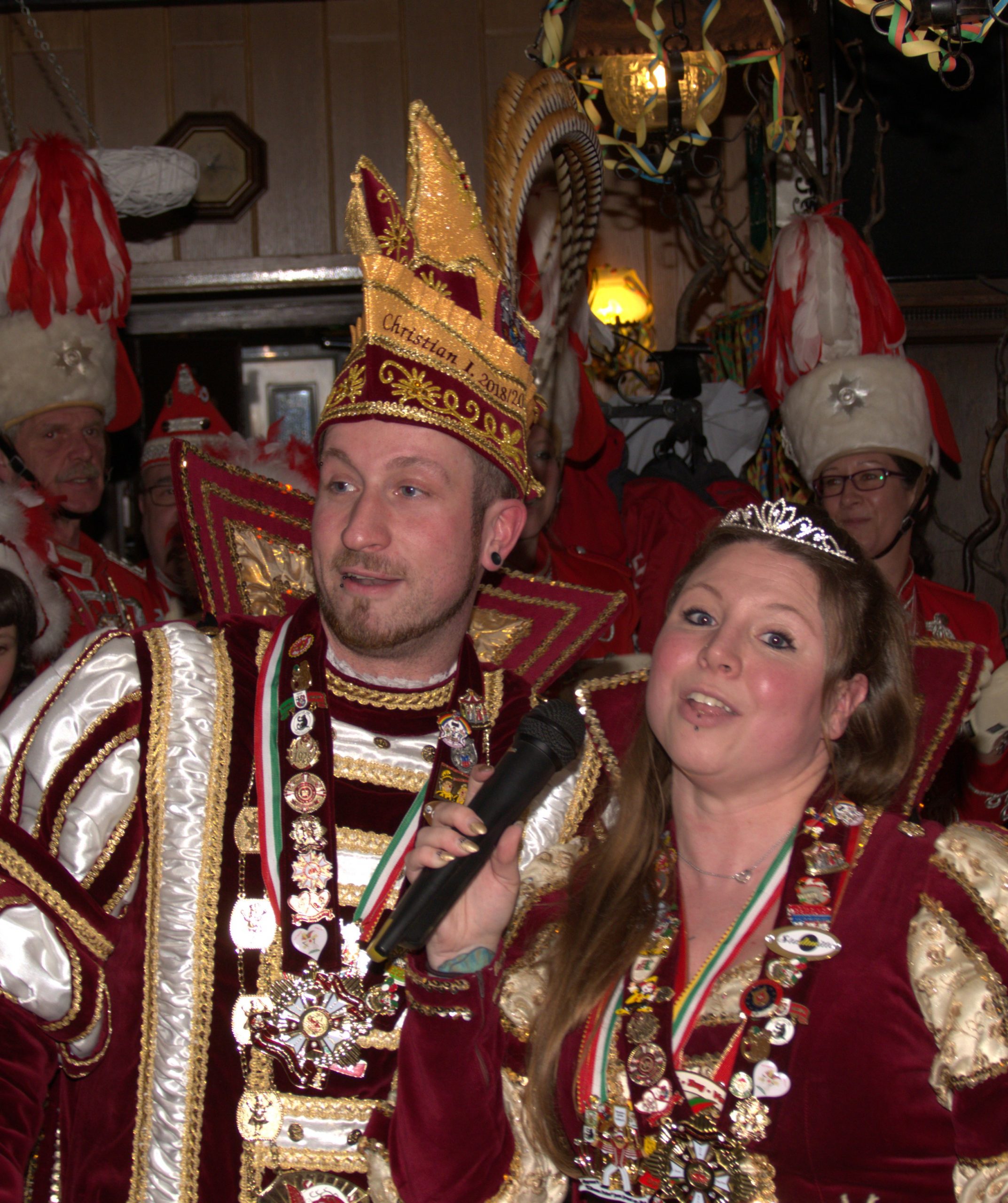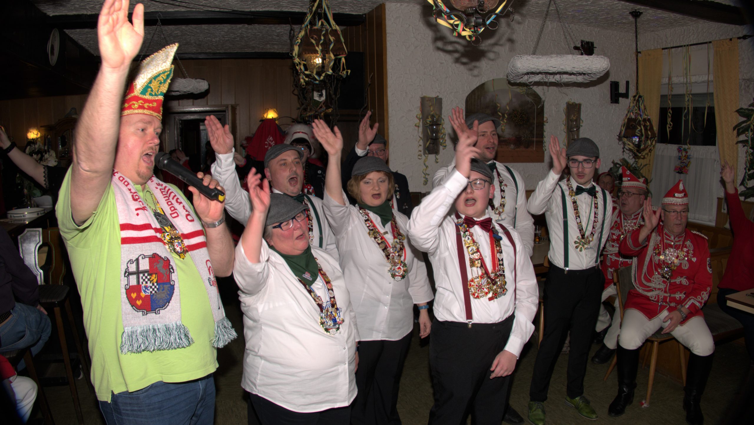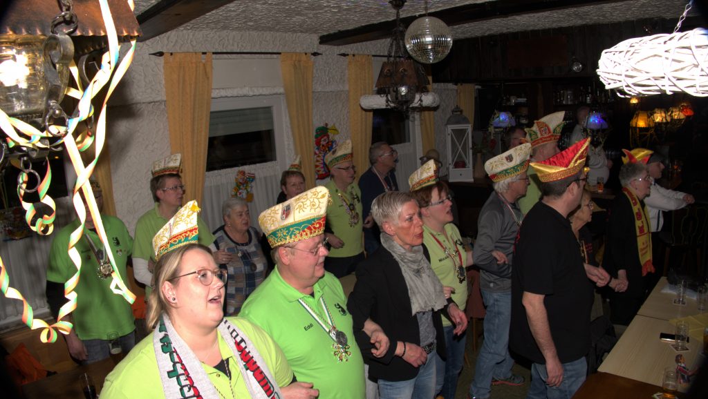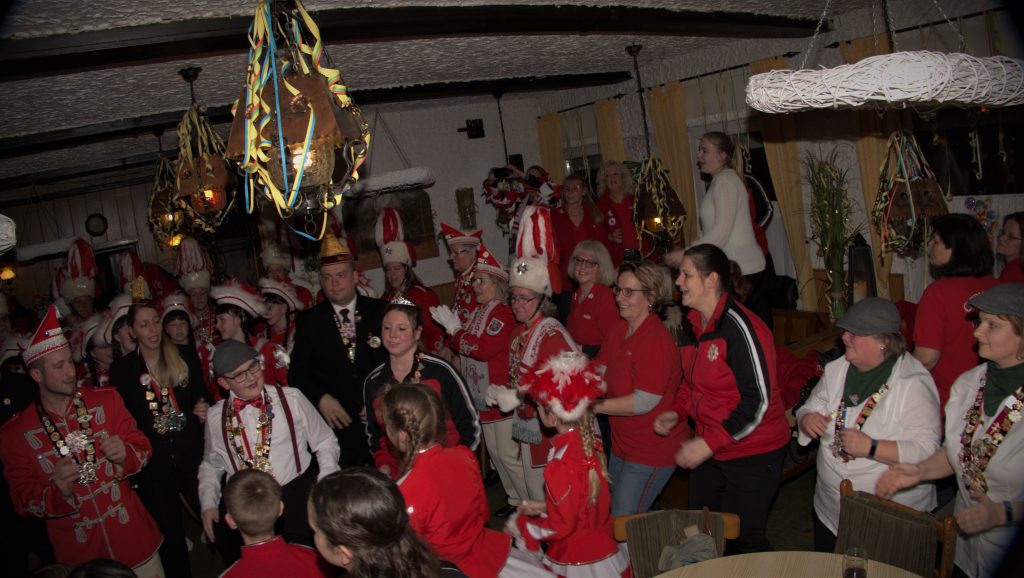 Anschließend sangen auch die beiden noch ihre Sessionslieder. Als dat Mariechen mit dem Reiter wieder als normale Karnevalisten vor den Anwesenden standen wurde gemeinsam mit allen Vereinen noch einmal ein Wunschlied des Prinzen gemeinsam geschunkelt. Auch an Euch beide ein herzliches Dankeschön für die zwei tollen Jahre.