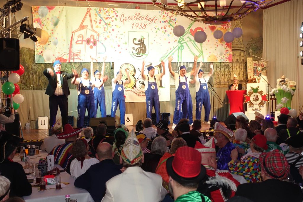Erstmals führte Präsident Sascha Rülicke gemeinsam mit Andrea III. (Doerner), Ex-Prinzessin der Stadt Krefeld und Mitglied der Gesellschaft 1938, durch den Abend. Anschließend an die Prinzengarde übernahm Siggi Rose das Mikrofon. Mit seinen „Karnevalshits mit Power“ hielt es niemanden lange auf den Stühlen, der Saal sang und schunkelte sich warm.